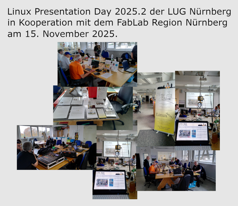 - das FabLab Region Nürnberg für die eigene Organisation, Helfer und die tatkräftige Unterstützung für unserem Linux Präsentations Tag.
